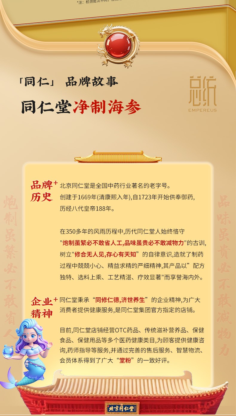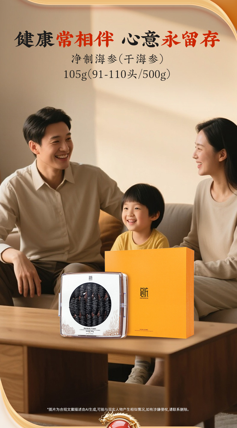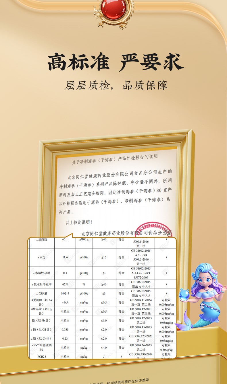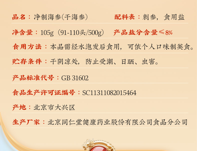 同仁堂 净制海参(干海参) 105克(91-110头/500克)