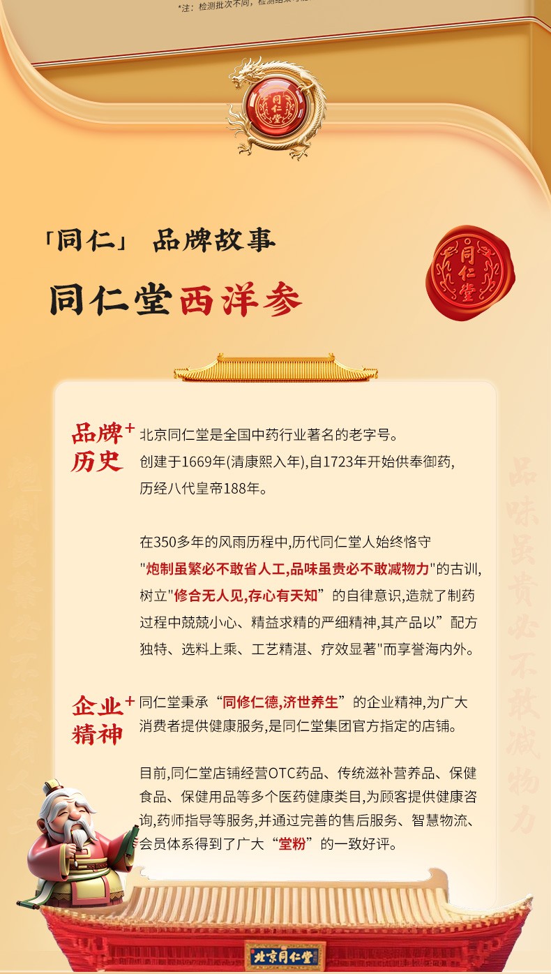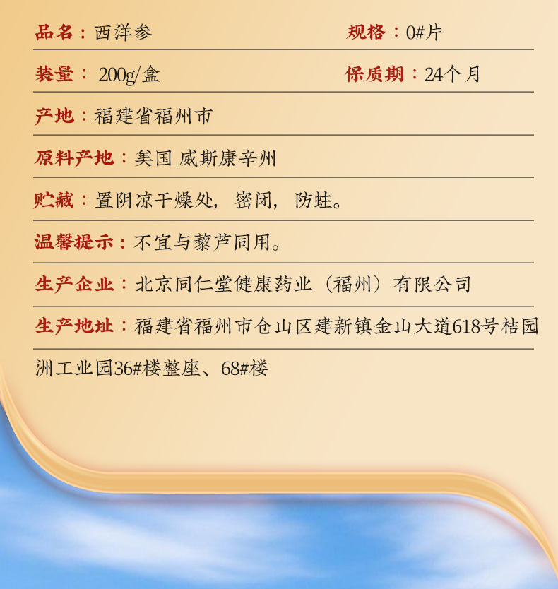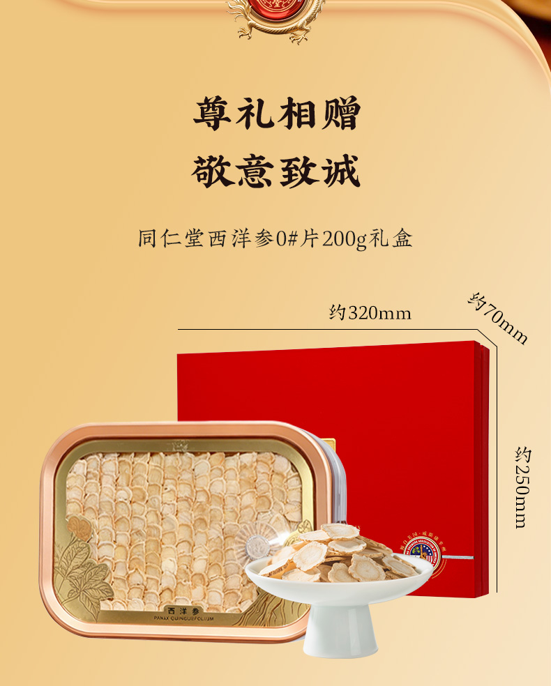 同仁堂 西洋参 0#片 200g/盒