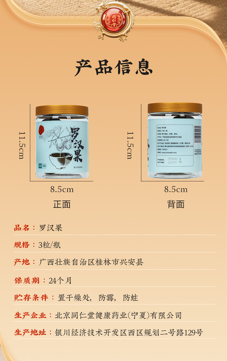 同仁堂 罗汉果 3粒/瓶