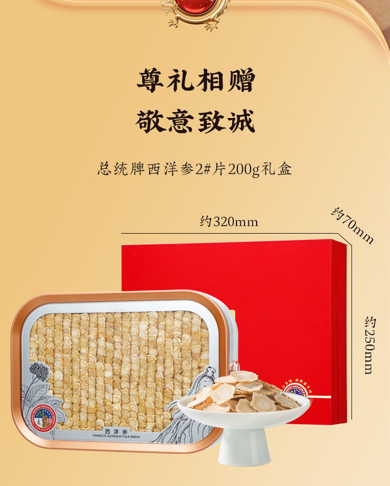 总统牌 西洋参 2#片/200克