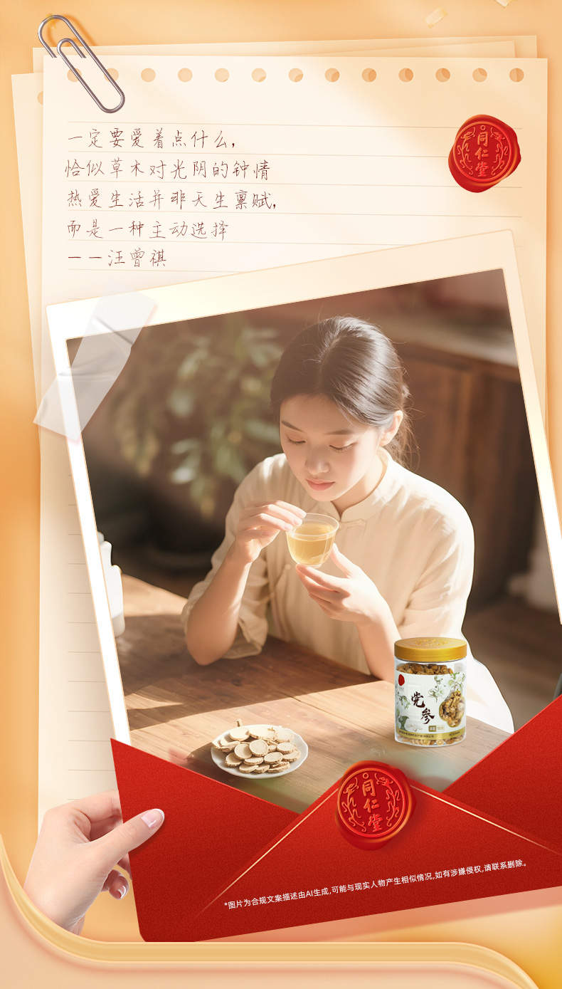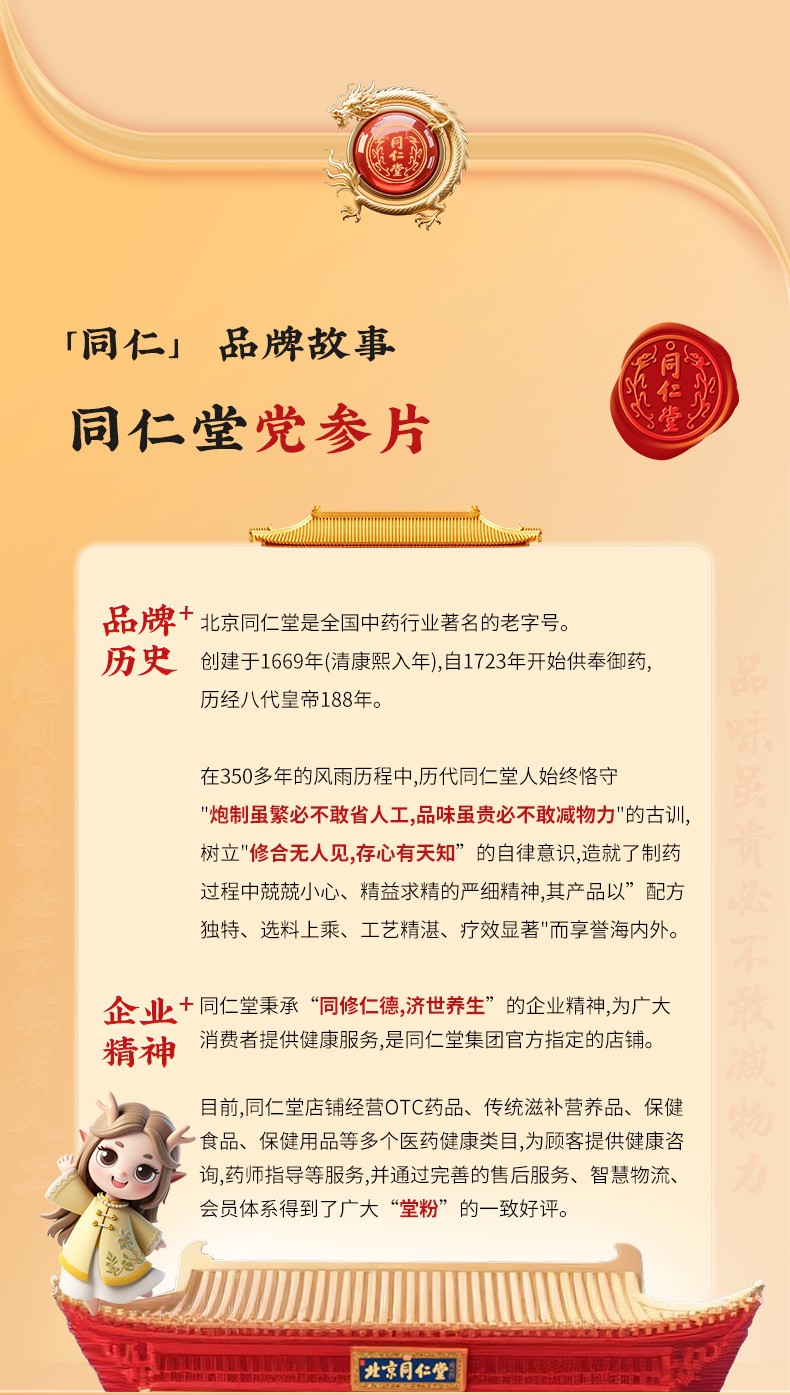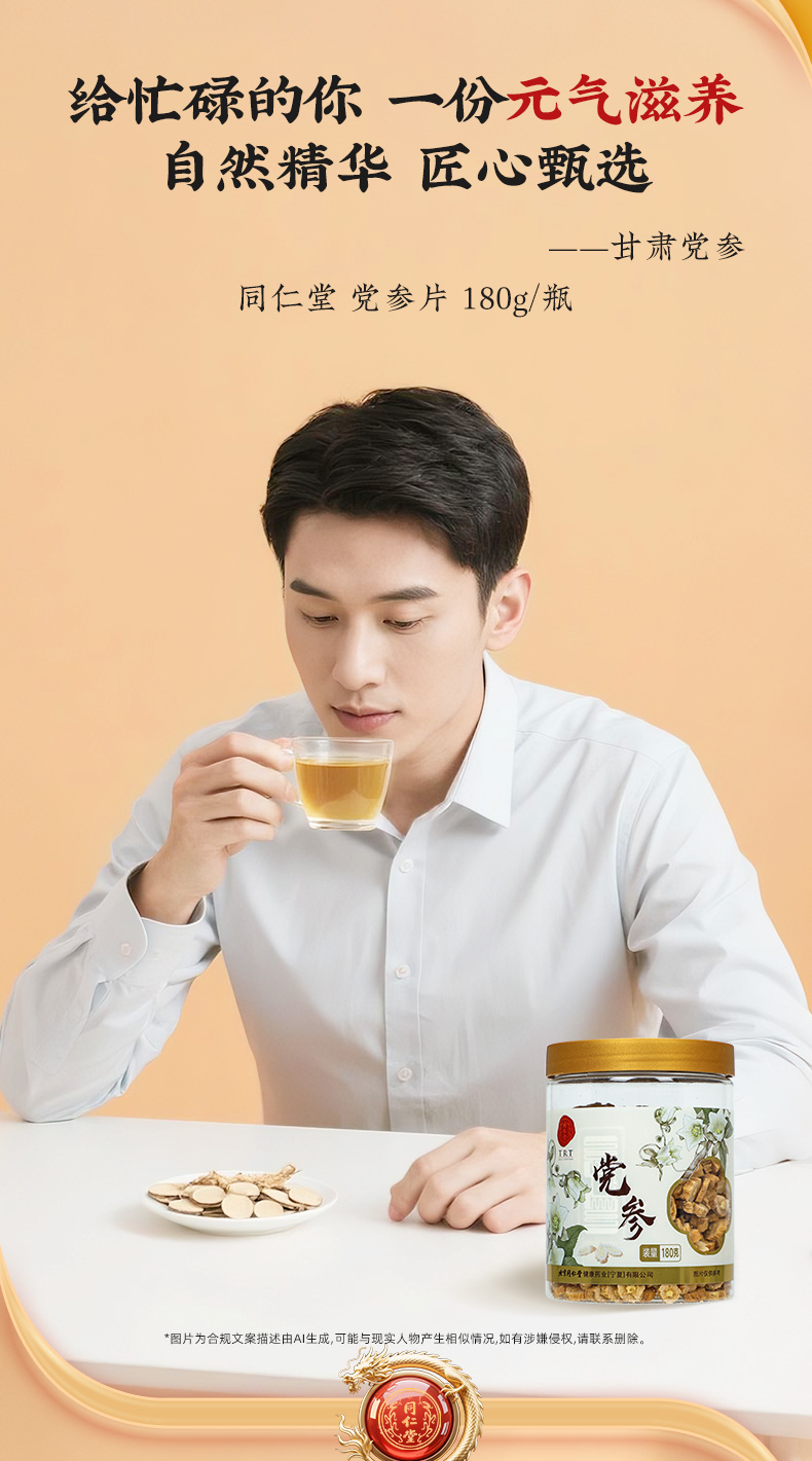 同仁堂 党参 厚片180g/瓶