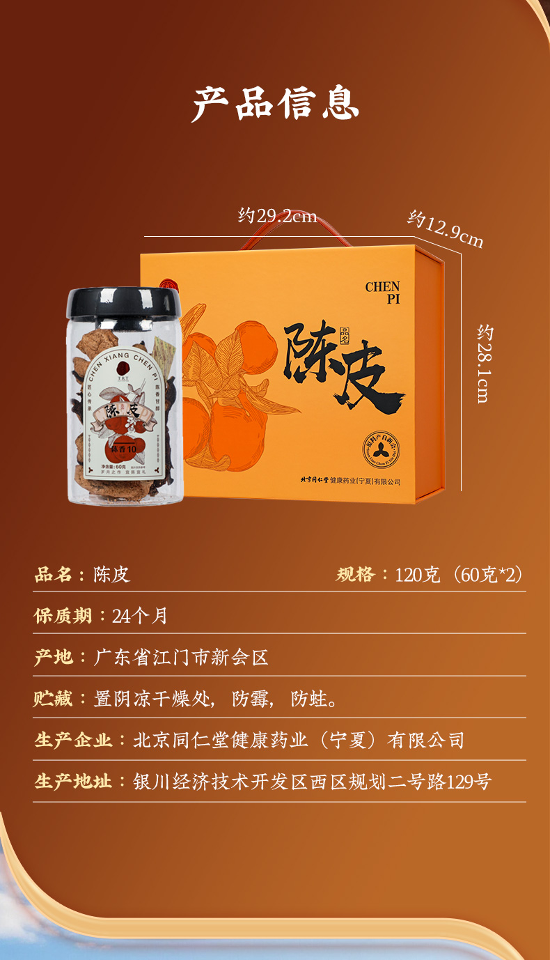 同仁堂 陈皮 陈香10/120克(60克*2)/盒