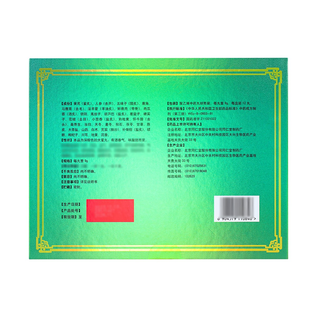 同仁堂 健身全鹿丸 9g×12丸/盒