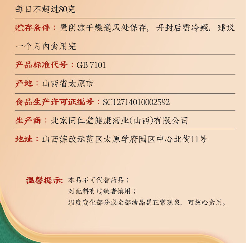 【生产企业】:北京同仁堂健康药业(山西)有限公司(原:北京同仁堂山西养生醋业有限公司)